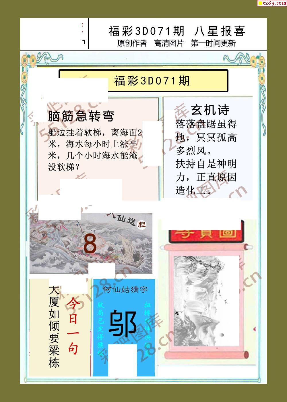 > 八星报喜26年071期福彩3d画谜