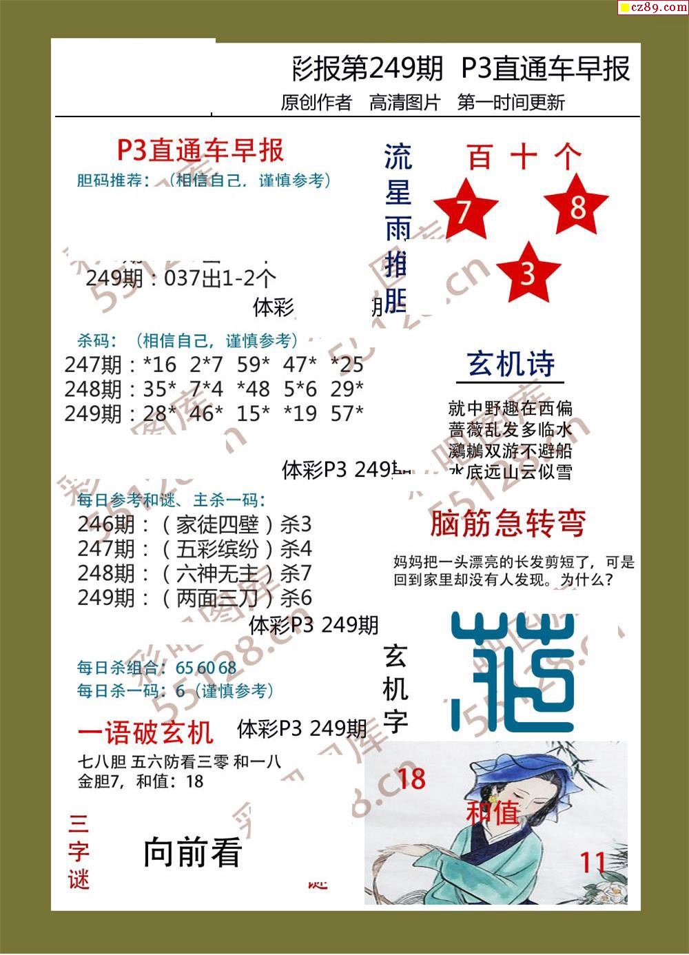 2025年296期牛彩网体彩P3画迷图谜汇总分享