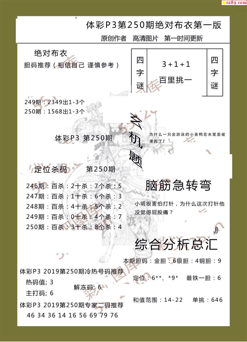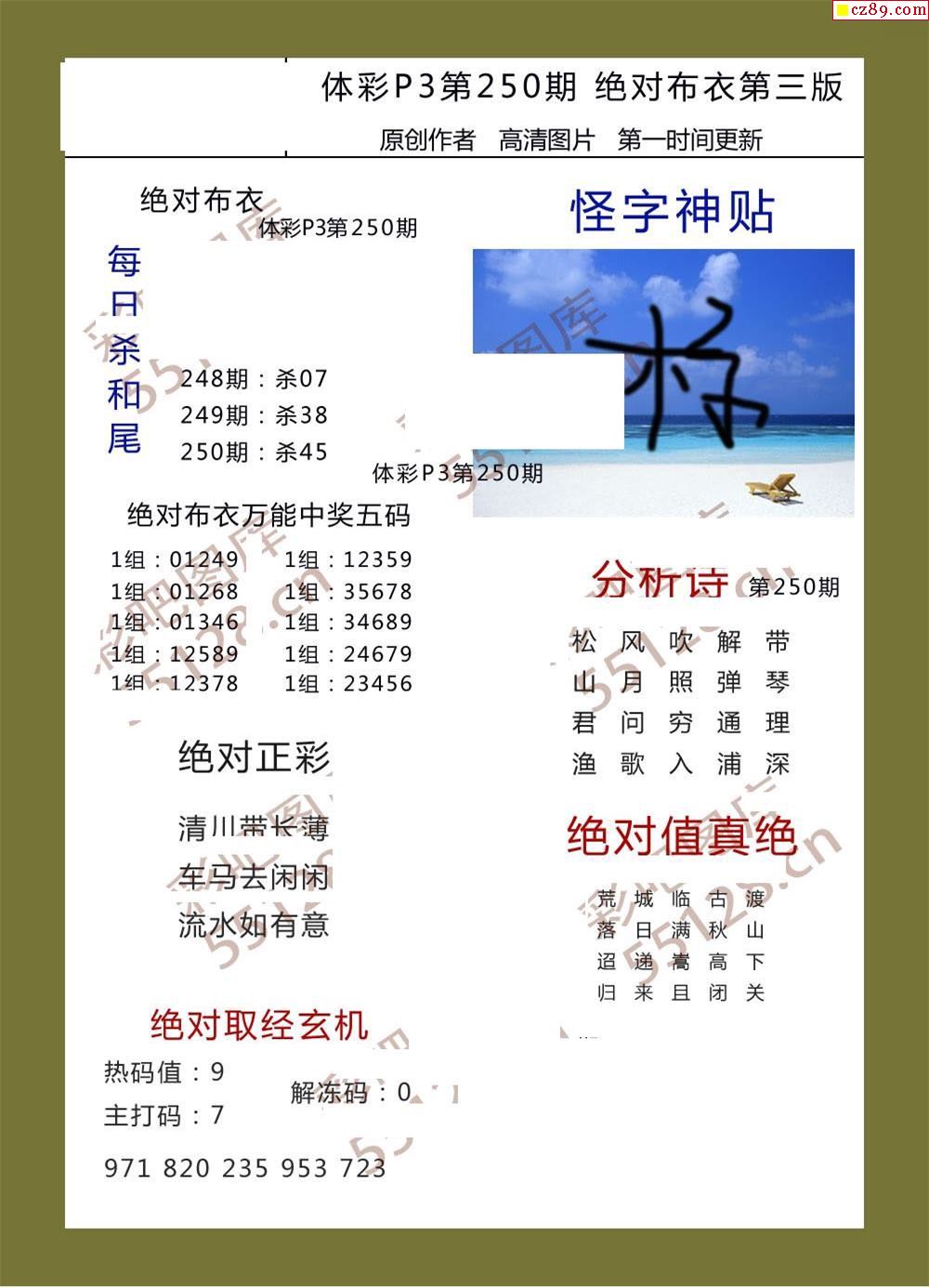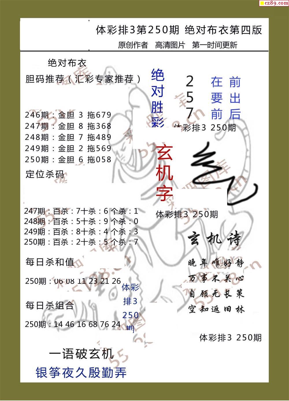 绝对布衣250期体彩p3图谜