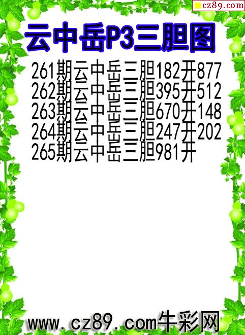 首页 > 排列3图谜 > 25年265期云中岳P3三胆图