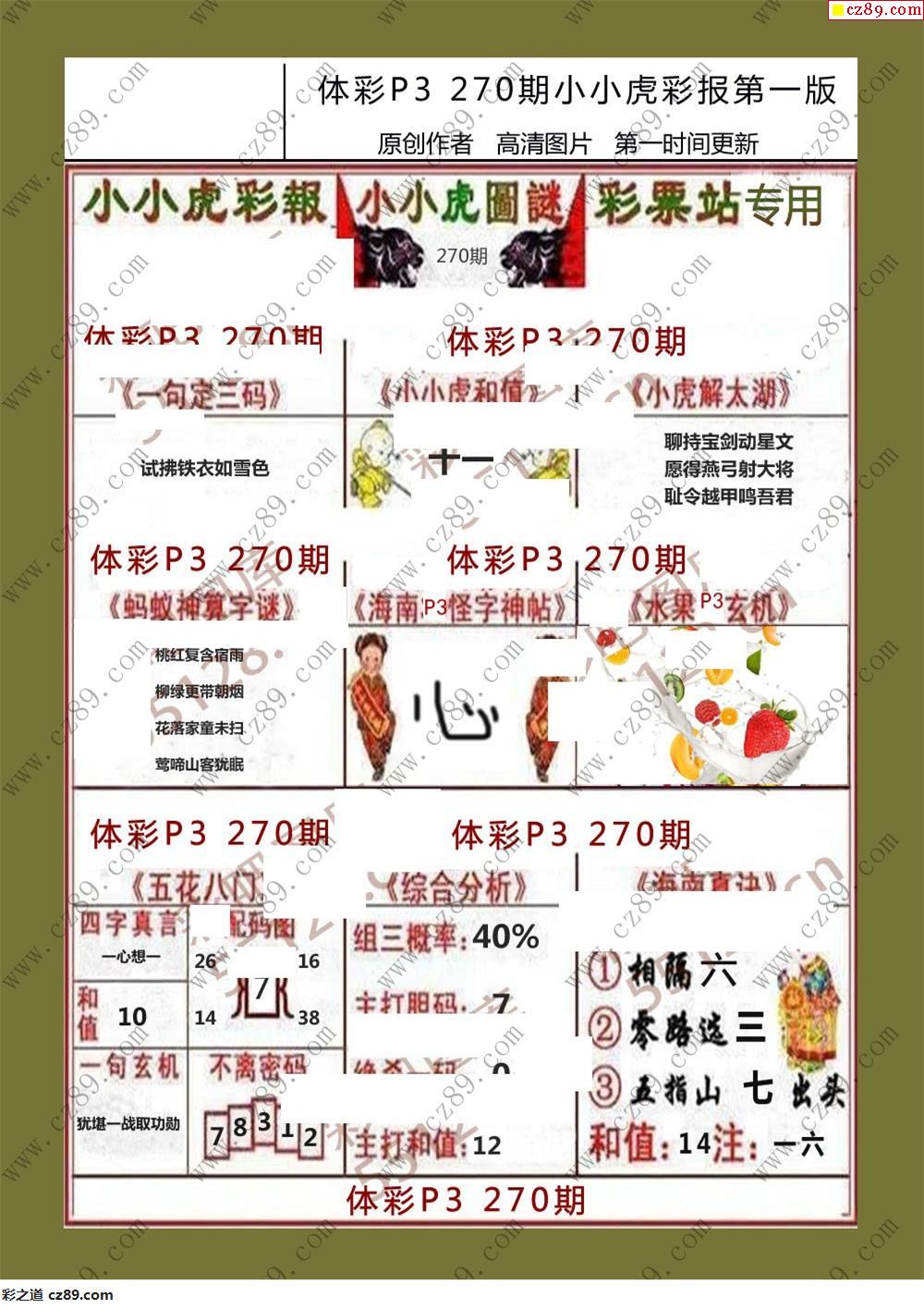 小小虎彩报270期体彩p3图谜