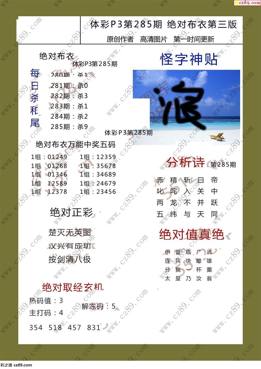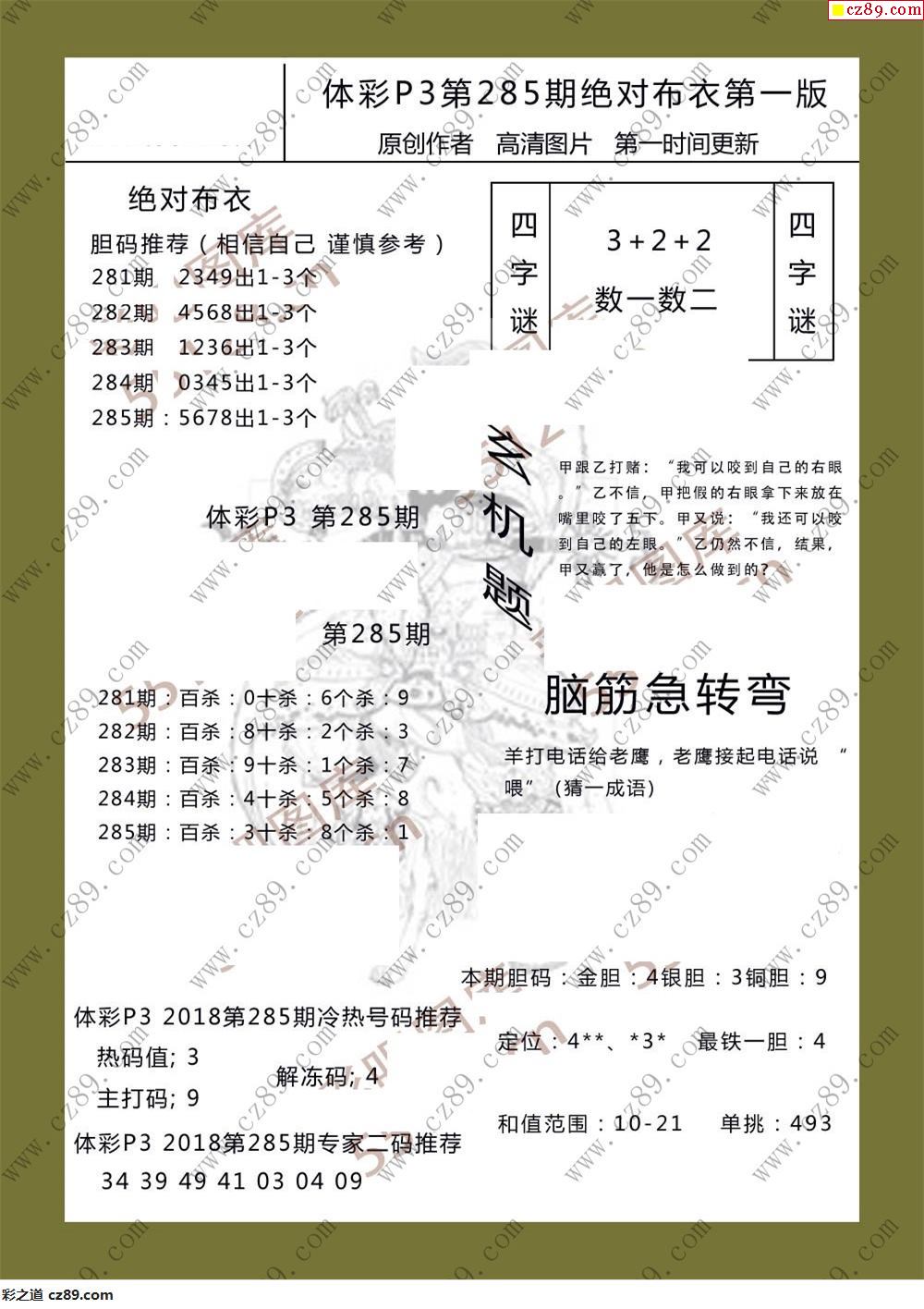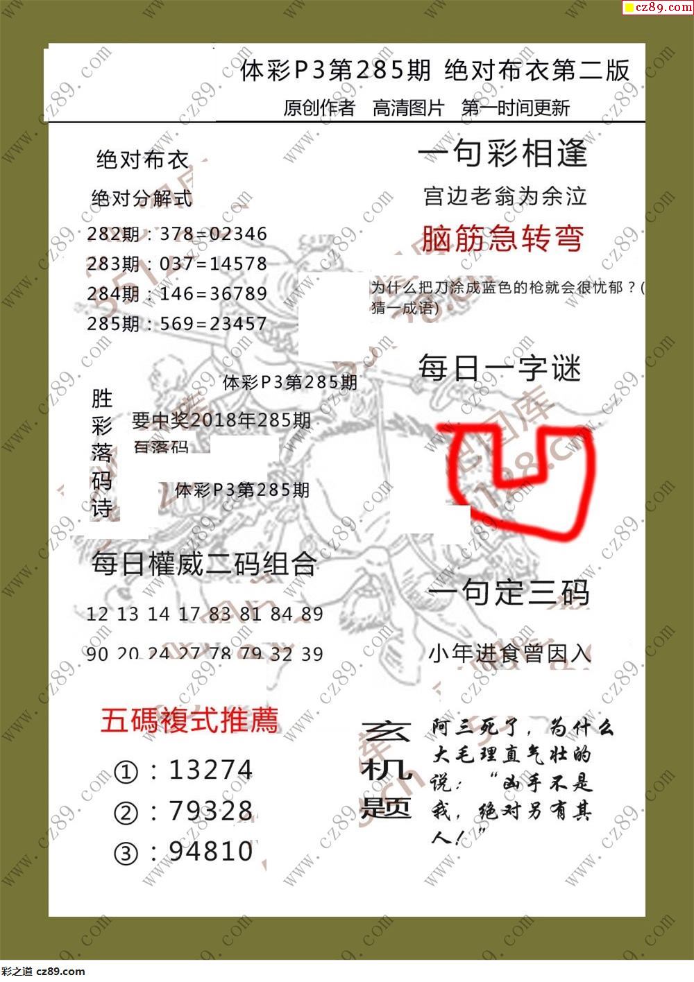 绝对布衣285期体彩p3图谜