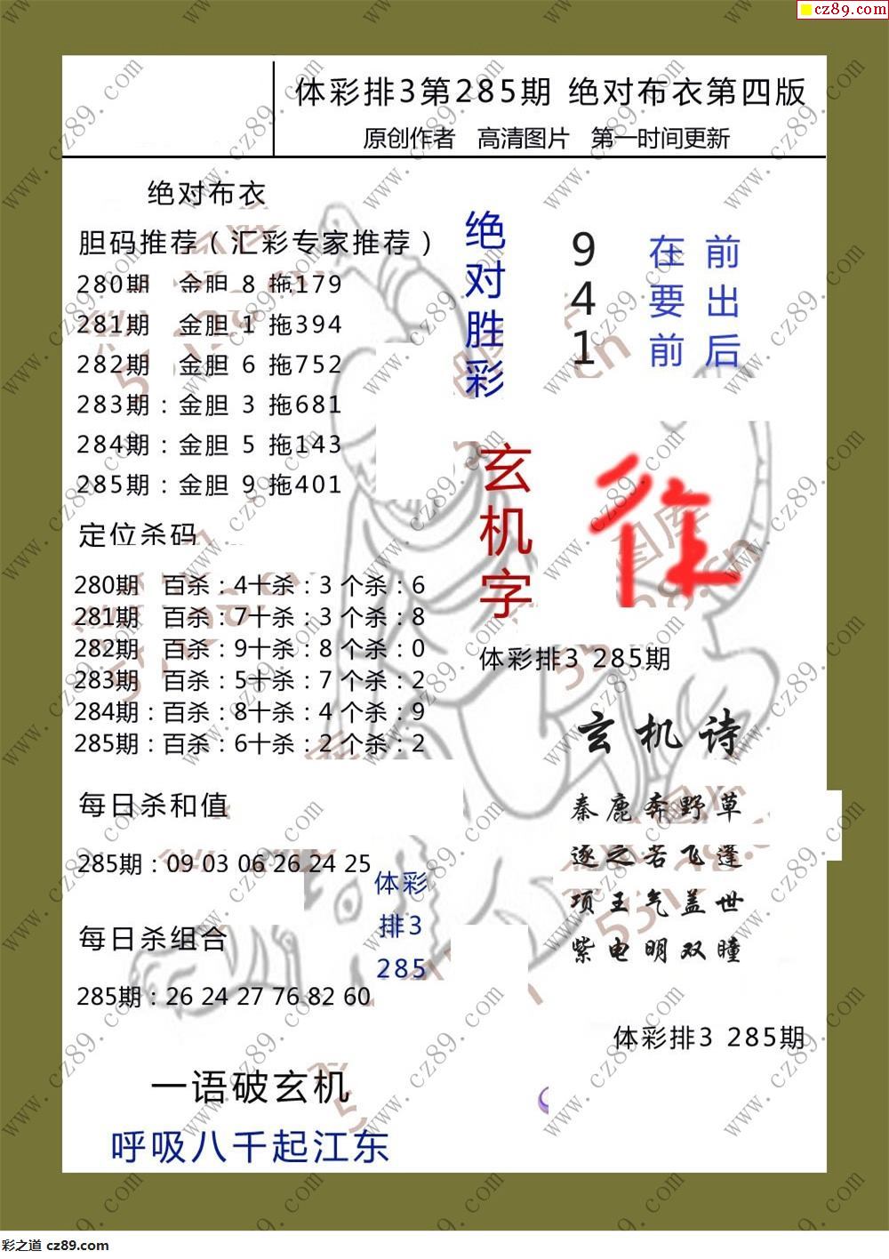 > 绝对布衣285期体彩p3图谜